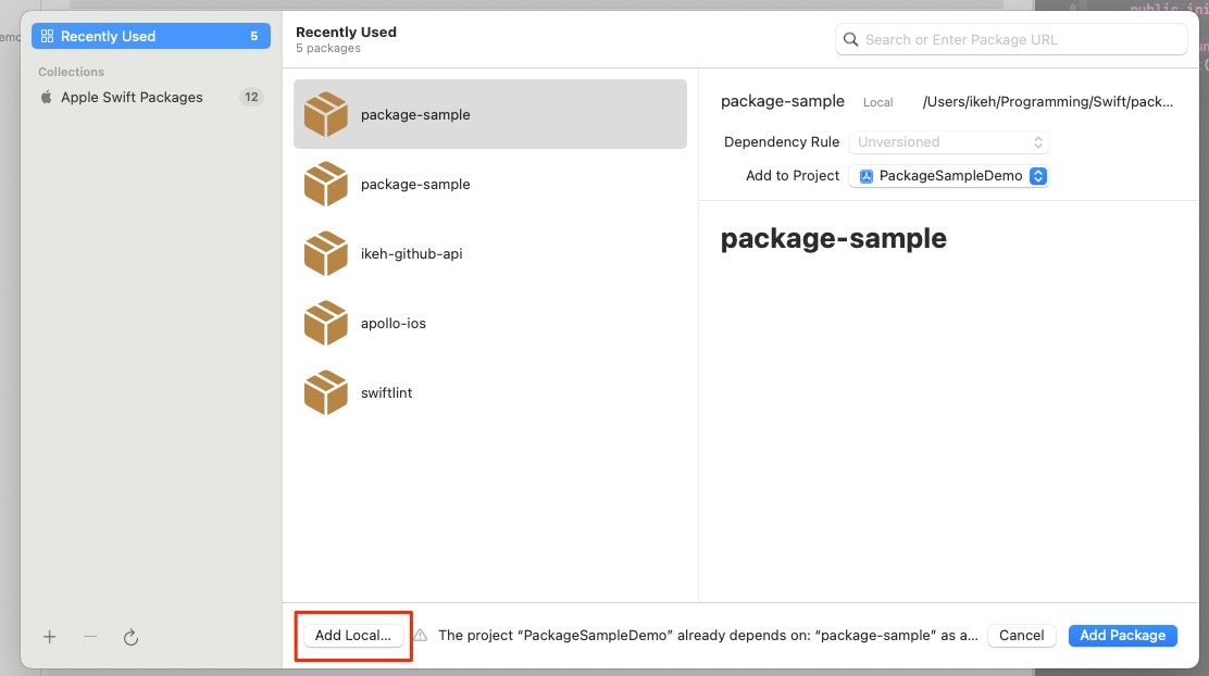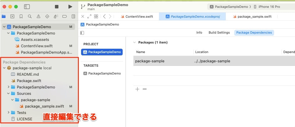 - 注意点としては、パッケージ自身をXcodeの別Windowで開いているとダメなので閉じることです