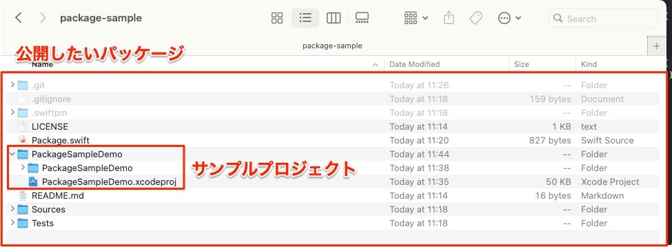 - 自作のSwiftPMのパッケージのリポジトリに、それを使ったサンプルのプロジェクトを内包したい
