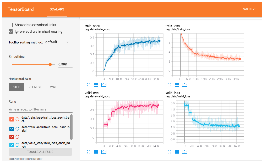 上の画像を見ると,左側の精度が徐々に上がっていき,右側の損失が徐々に下がっていっているのが見て取れる.