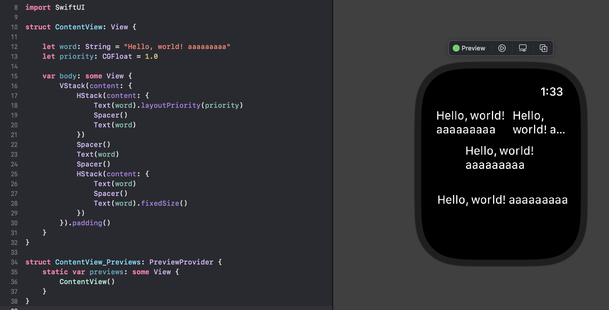 表示文字列の長さによって優先するTextの幅が変わっているのが分かります。