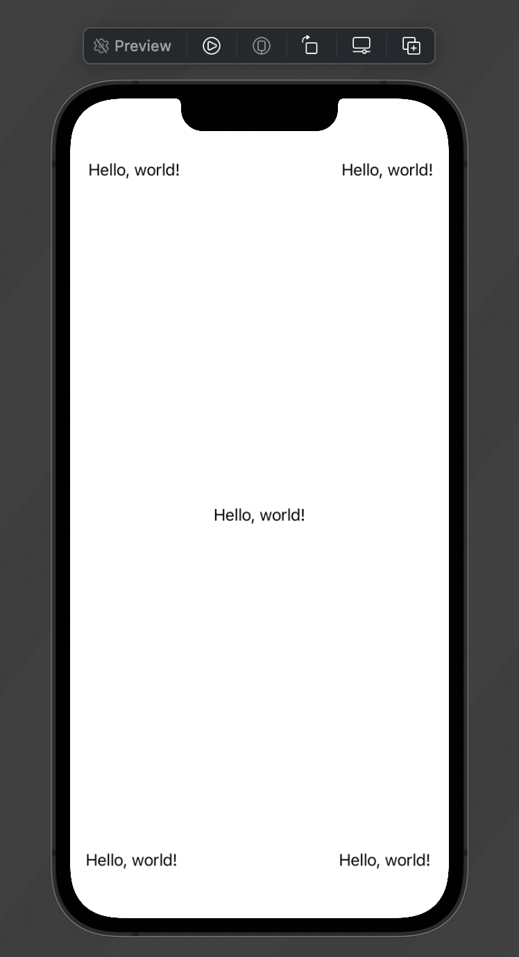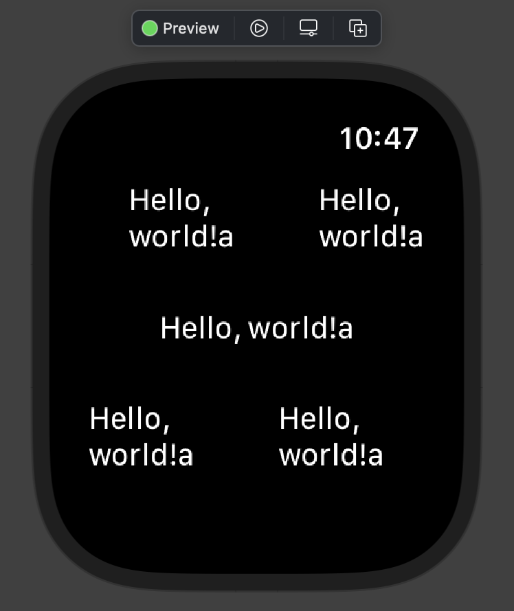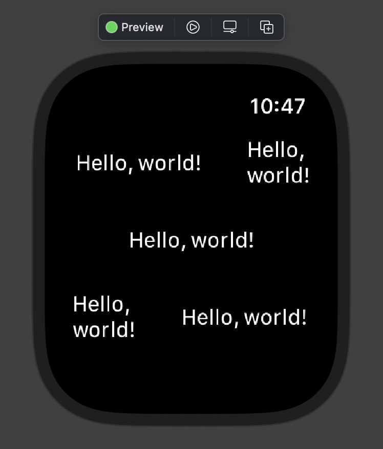 また、top&leading, bottom&trailingな位置のTextに対してフレームを使って幅を与え、改行に対応しました。