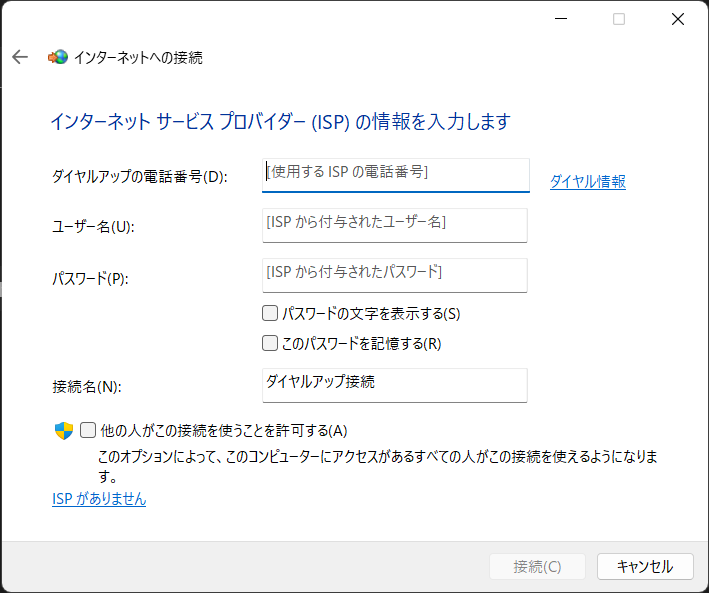 ダイヤルアップ接続について