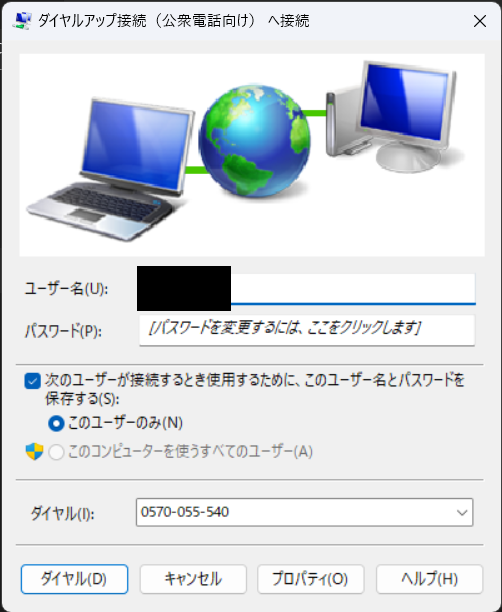 | ダイヤルアップの電話番号 | 0570-055-540 |