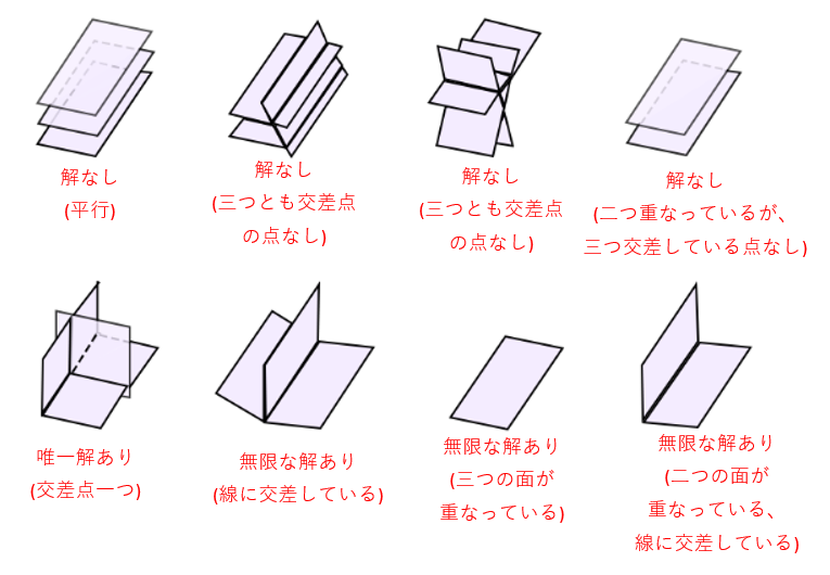 幾何的に見れば、これが三つの面の交差点があるのかを解きます。