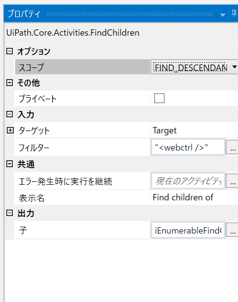 ・プロパティのスコープを「FIND_CHILDREN」から「FIND_DESCENDANT」に変えます。