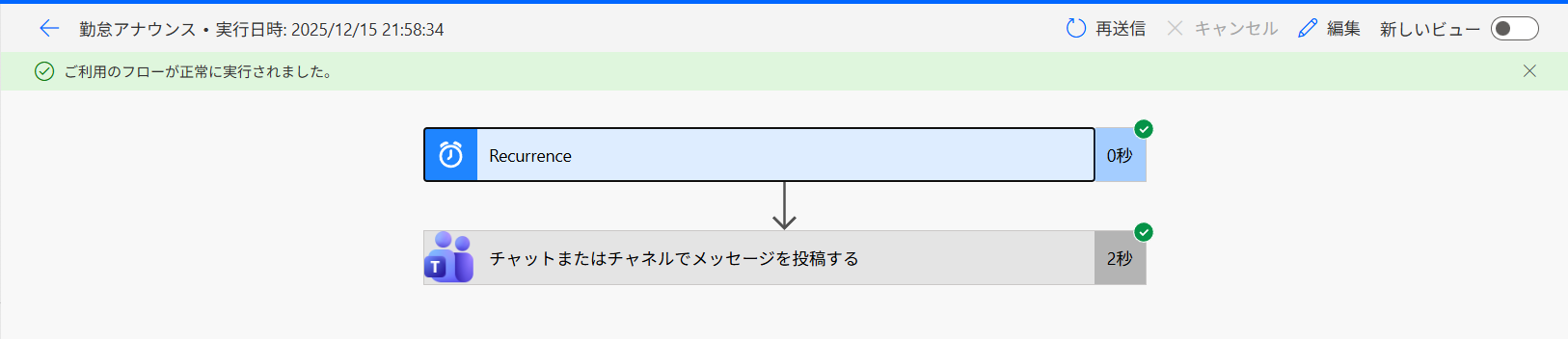 画像を見ていただくとわかる通り、正常にフローが実行されているのがわかります。