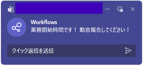 簡単なワークフローの処理のため、この時点で画像のようなTeams通知が飛んできます。
