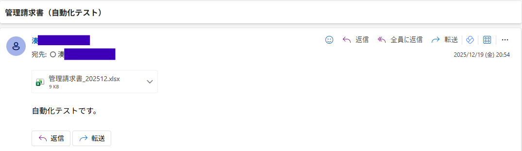 ここでは割愛しますが、ファイルの有り無しと件名の正誤をすべて条件で分けてテストし想定通りの動きをしていることを確認済です。