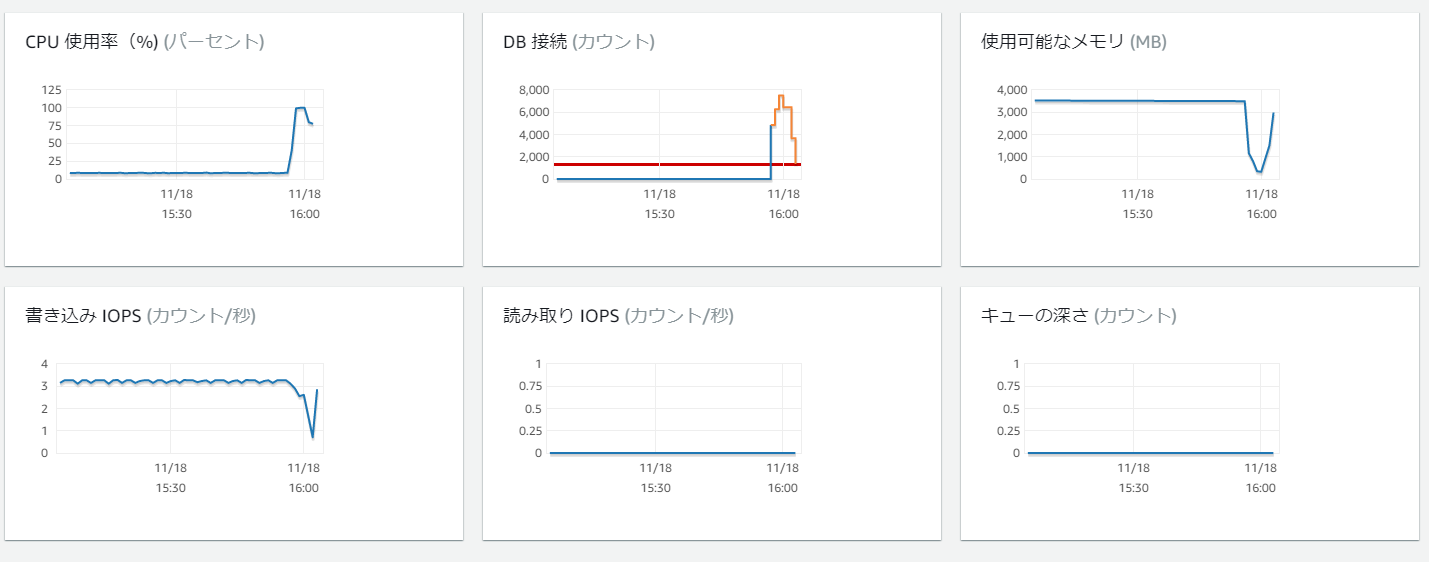 AWS の コンソール側で、DB接続(カウント)を確認した例です。
