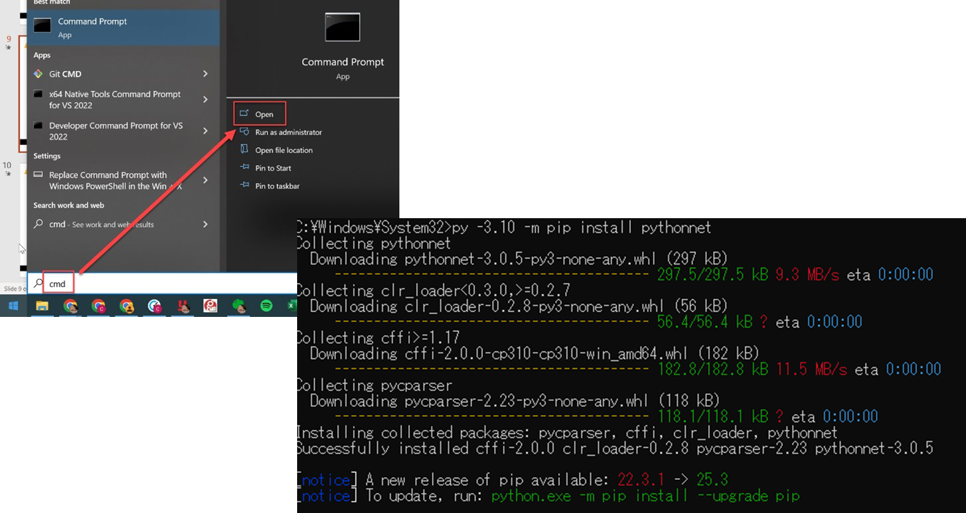 コマンドプロンプトを管理者権限で開き以下モジュールインストールコマンドを実行。