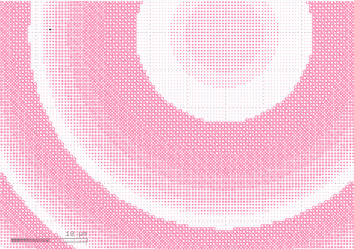 PlanOpSim側で自動配列でき、GDS上で円柱ピラーが並んでいることを確認できました。