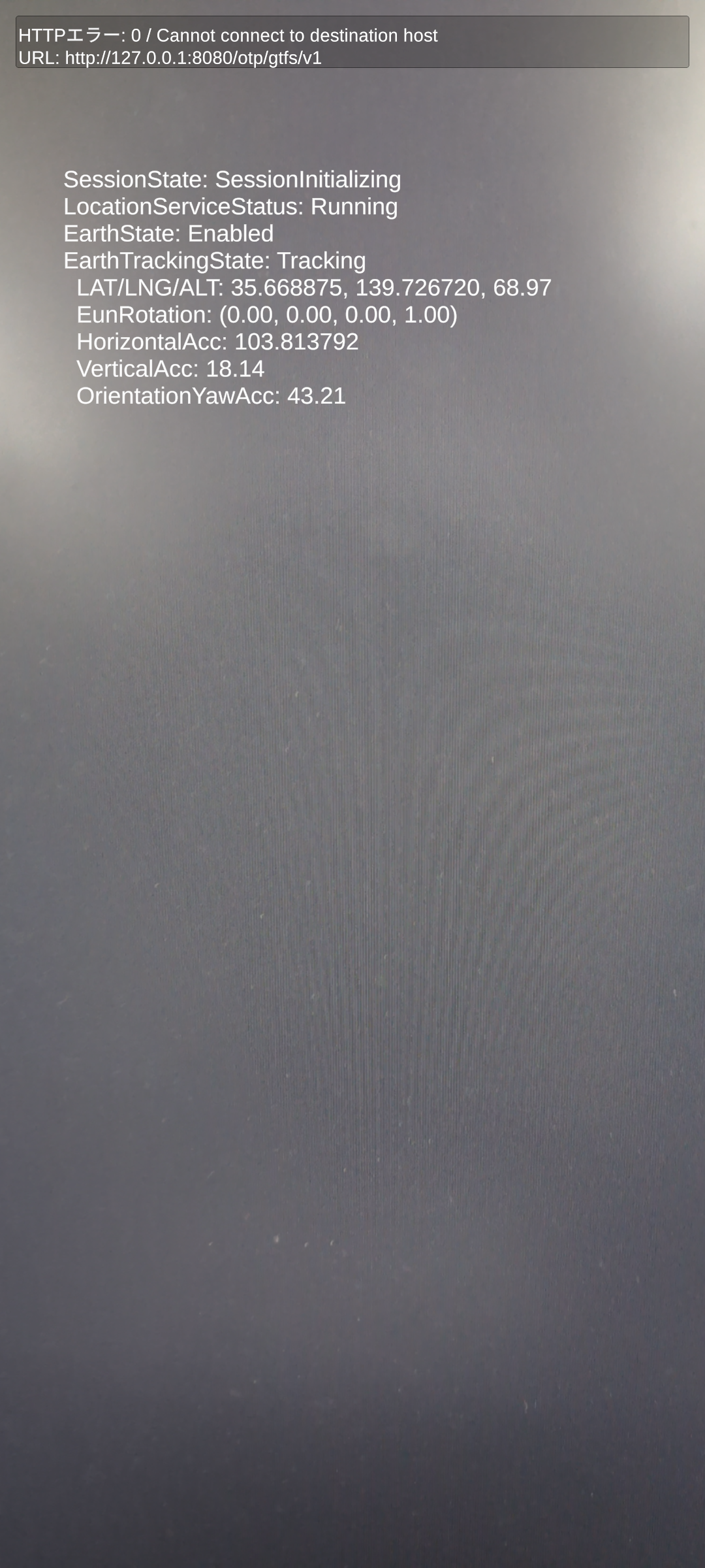 この工程を忘れるとこのように画面上部のUIがHTTPエラーを表示して、経路探索が行えません。