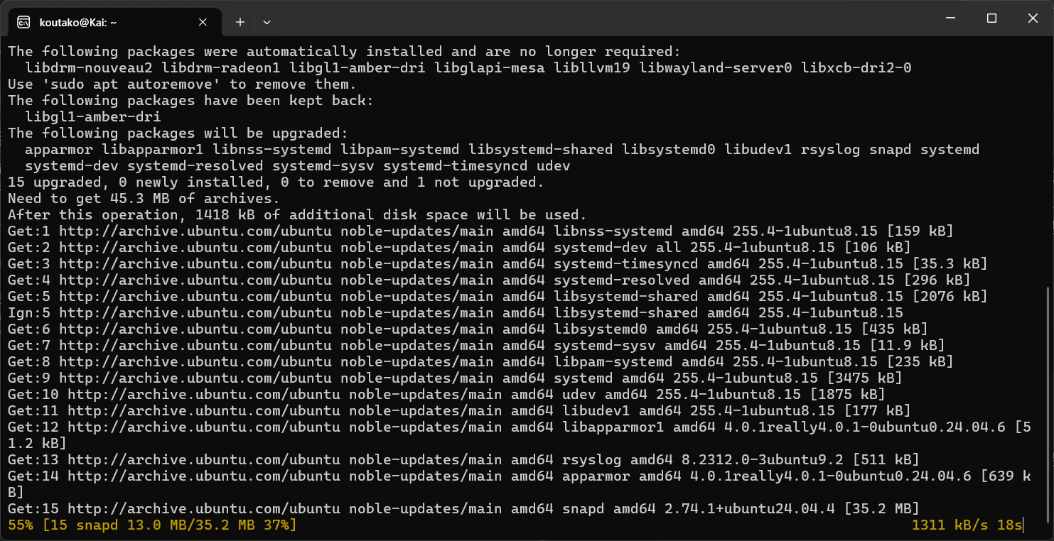 どことなくいつもと様子の違うターミナルが出てきたら成功です。