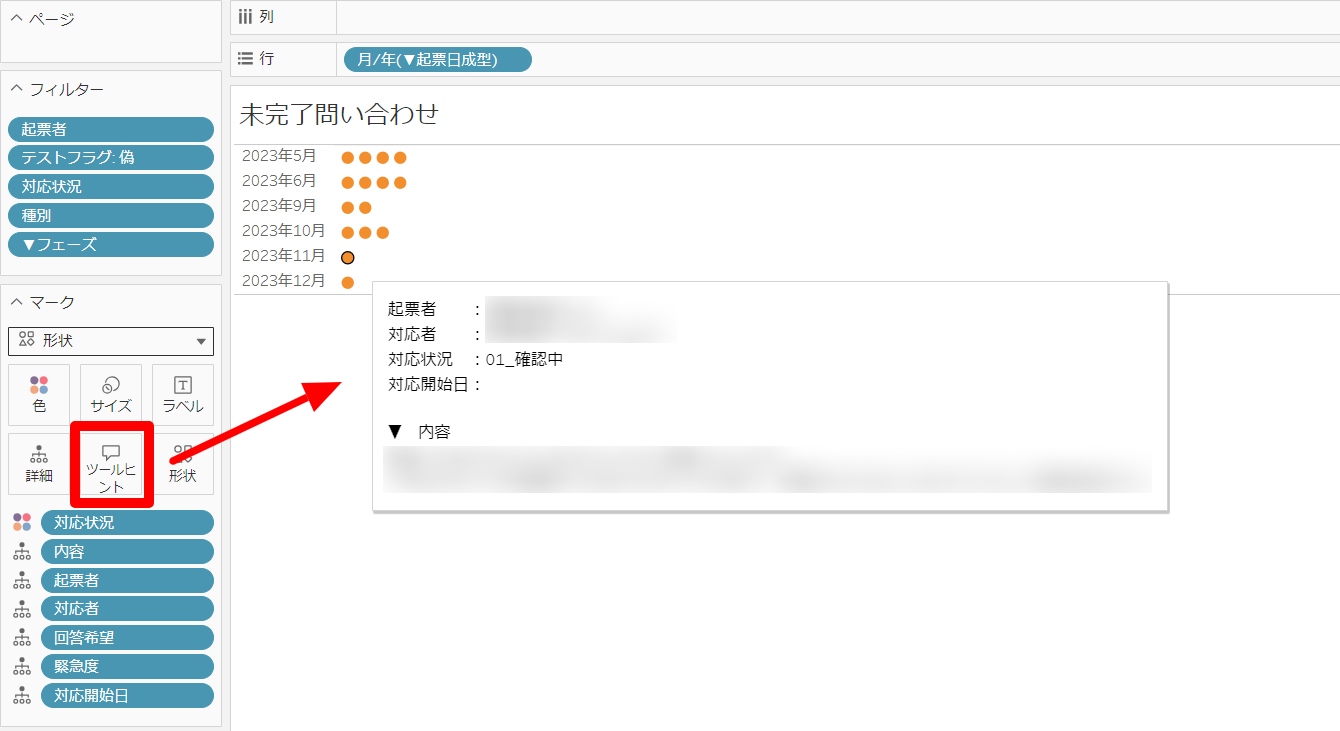 Tableauで未完了のまま残ってしまっている問い合わせを可視化することができました。