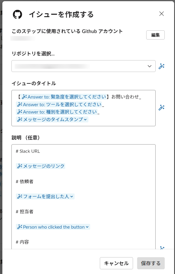 - これは、ワークフローを共有したらCX推進室のエンジニア(@takaHAL)が設定してくれたものです。