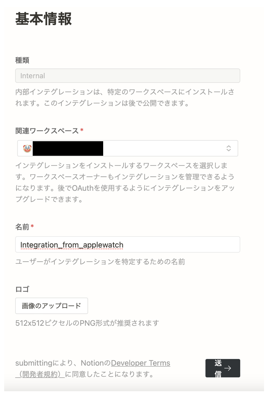 Apple Watchから追加したいTODOリストのあるワークスペースを選択し、名前はわかりやすいものを。画像のアップロードはしなくてもOK。送信をクリック。