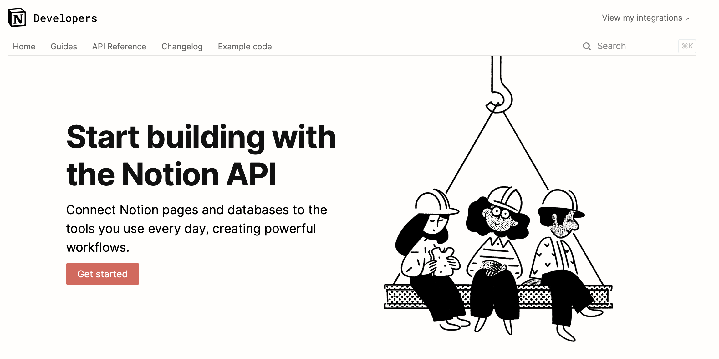 ブラウザでNotionにログインした状態で https://developers.notion.com にアクセスします。