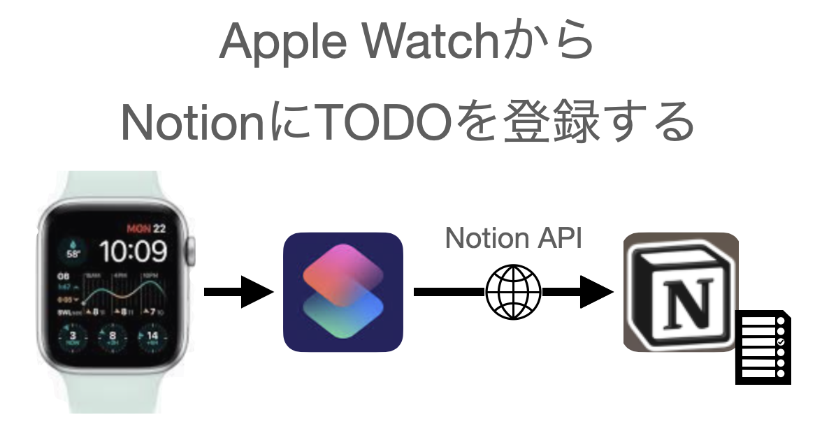 とても便利なので、今までiphoneのTODOアプリで行っていた個人のTODOをnotionに移行したい。課題はapple watchからの音声入力。ということで、notionのAPIを利用してapple watchからShortcutアプリを使ってNotionのデータベースにページを追加できるようにしてみました。