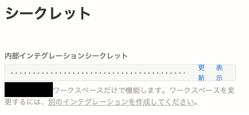 コピーした後に更新を押しちゃうと、コピーしたインテグレーションシークレットは無効になるので注意。インテグレーションシークレットは公開しないように注意が必要です。