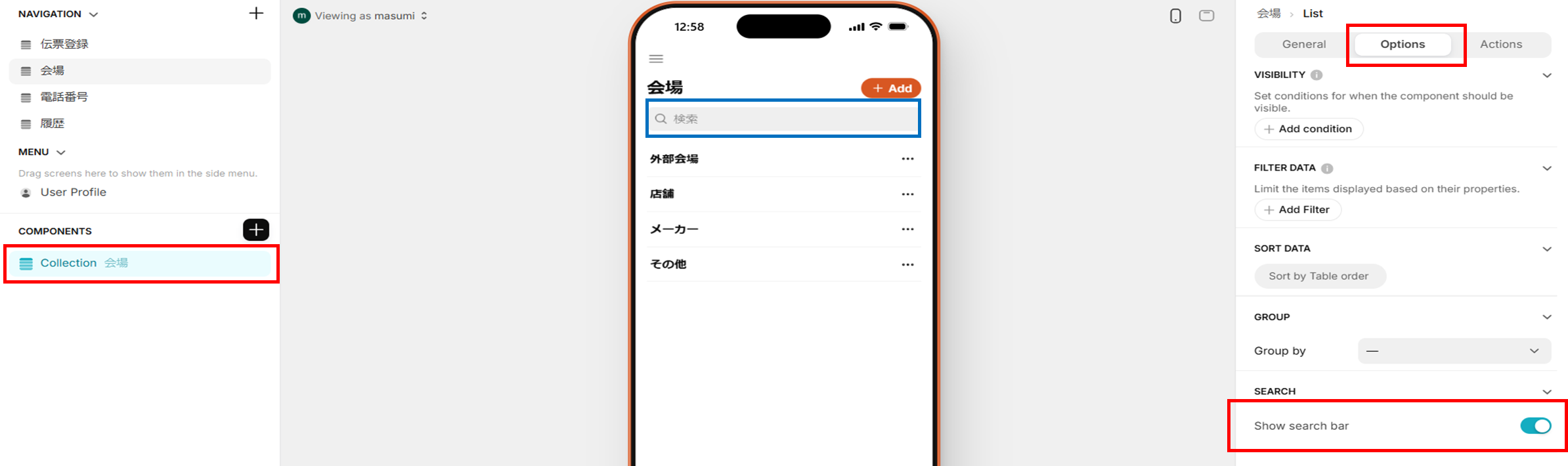 ◆検索窓の表示・非表示