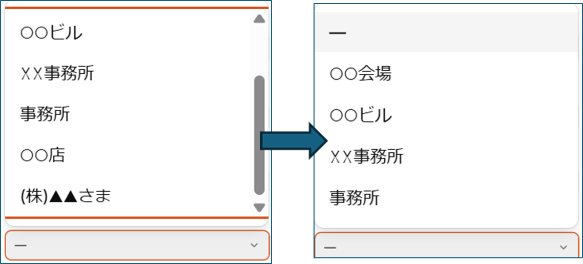 「発送先」などはドロップダウンリストから選びたい!