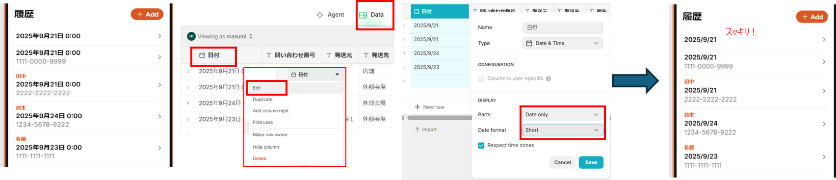 [右] Date > Table tableを「履歴」に変更