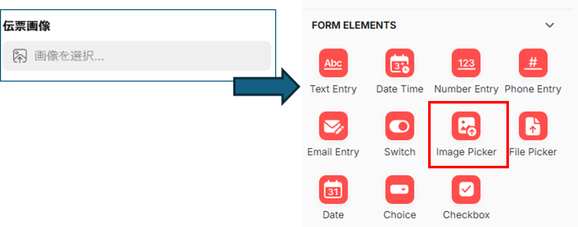 [左] COMPONENTS「+」➡ FORM ELEMENTS > Choiceを選択