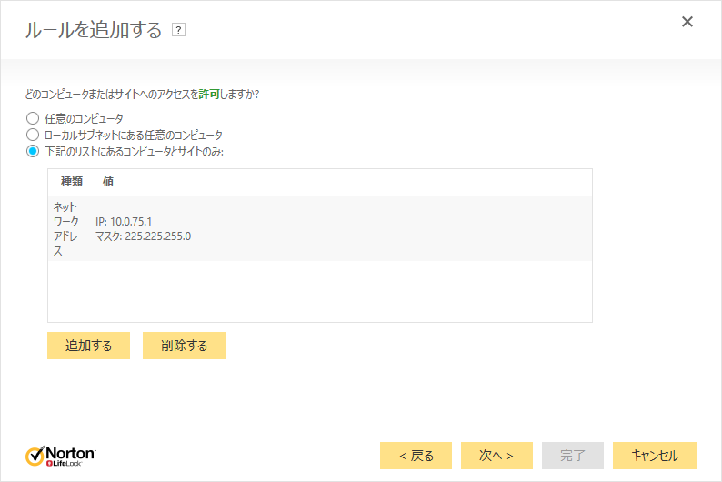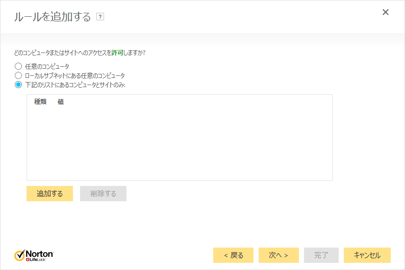 手順5 : [下記のリストにあるコンピュータとサイトのみ] にチェックを入れて[追加する]をクリック