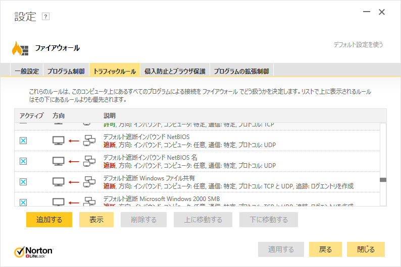 手順1 : [設定] > [ファイアウォール] >[トラフィックルール]