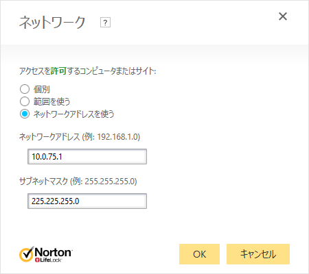 手順6 : [ネットワークアドレスを使う] にチェックをいれて、以下の内容で[OK]