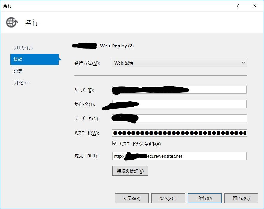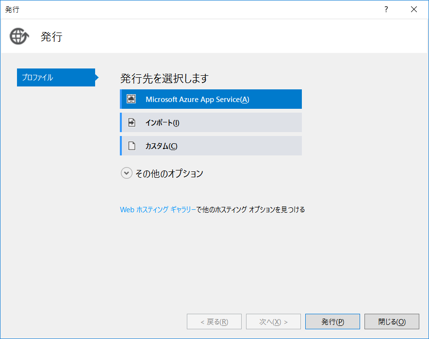 出来たら(左上のコンボボックスがDebugになっている場合はReleseに変更してください)メニューバーのビルドからソリューションのビルドを選択して前と同じように発行からAzure上にデプロイするだけです。