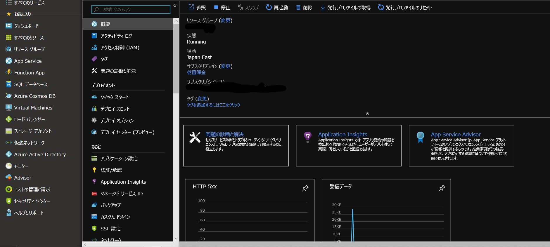 ※試し終わったら下記の画像のようにAzureのポータルに入りましょう。