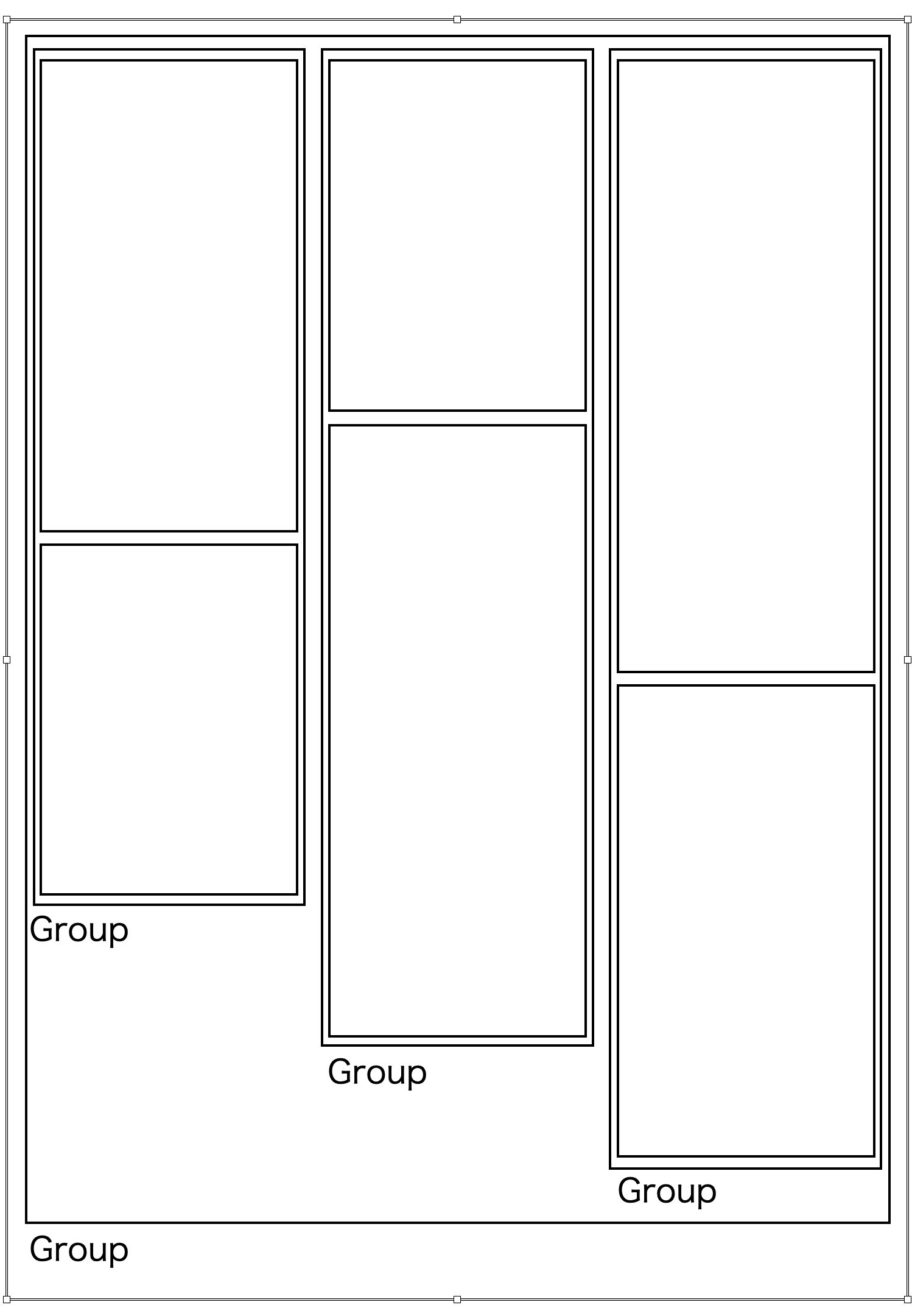 GroupからGroupを作るのは複雑なレイアウトを達成する上で必須のテクニックになっているのでなんとなく記憶の片隅に留めておくと便利かもしれません。