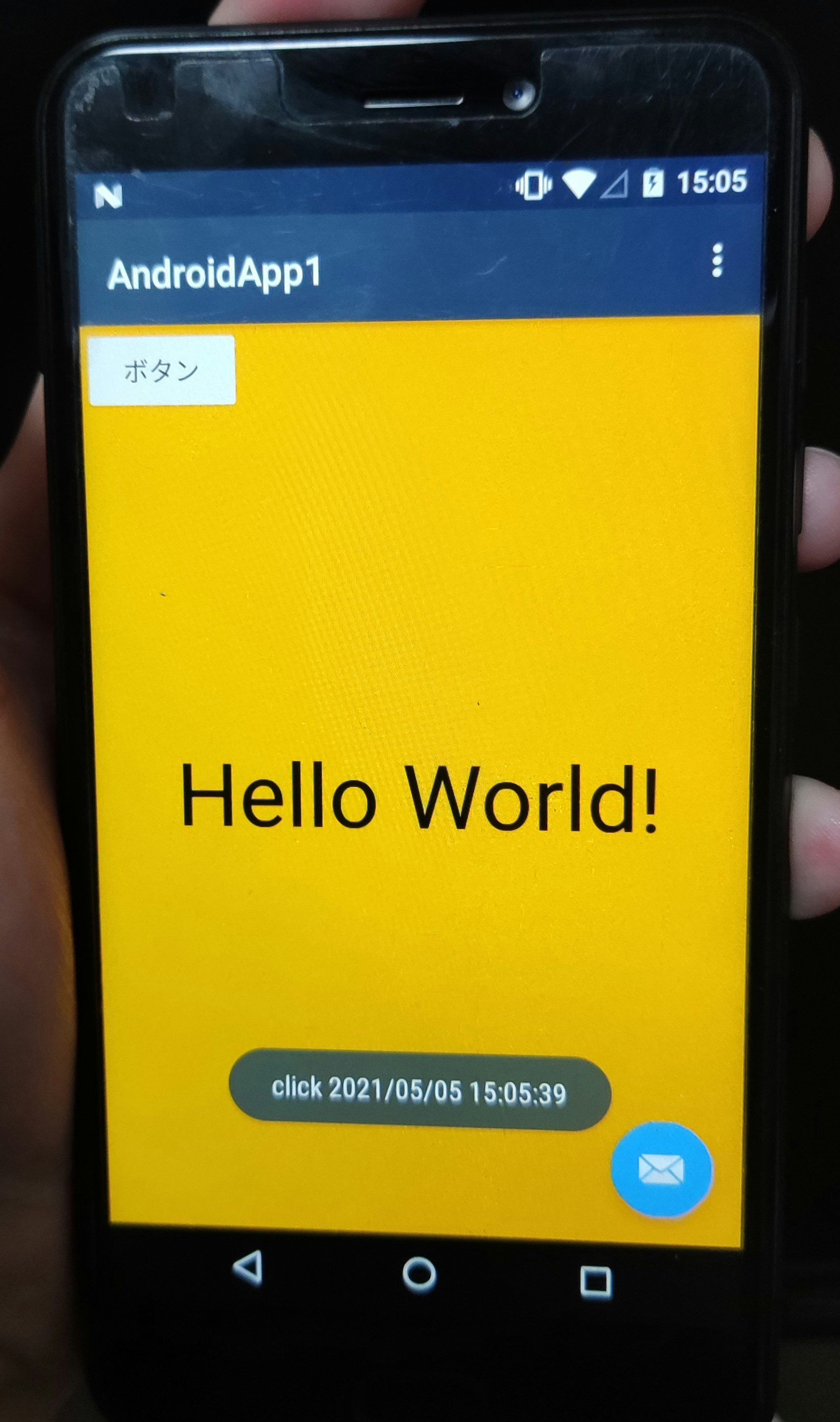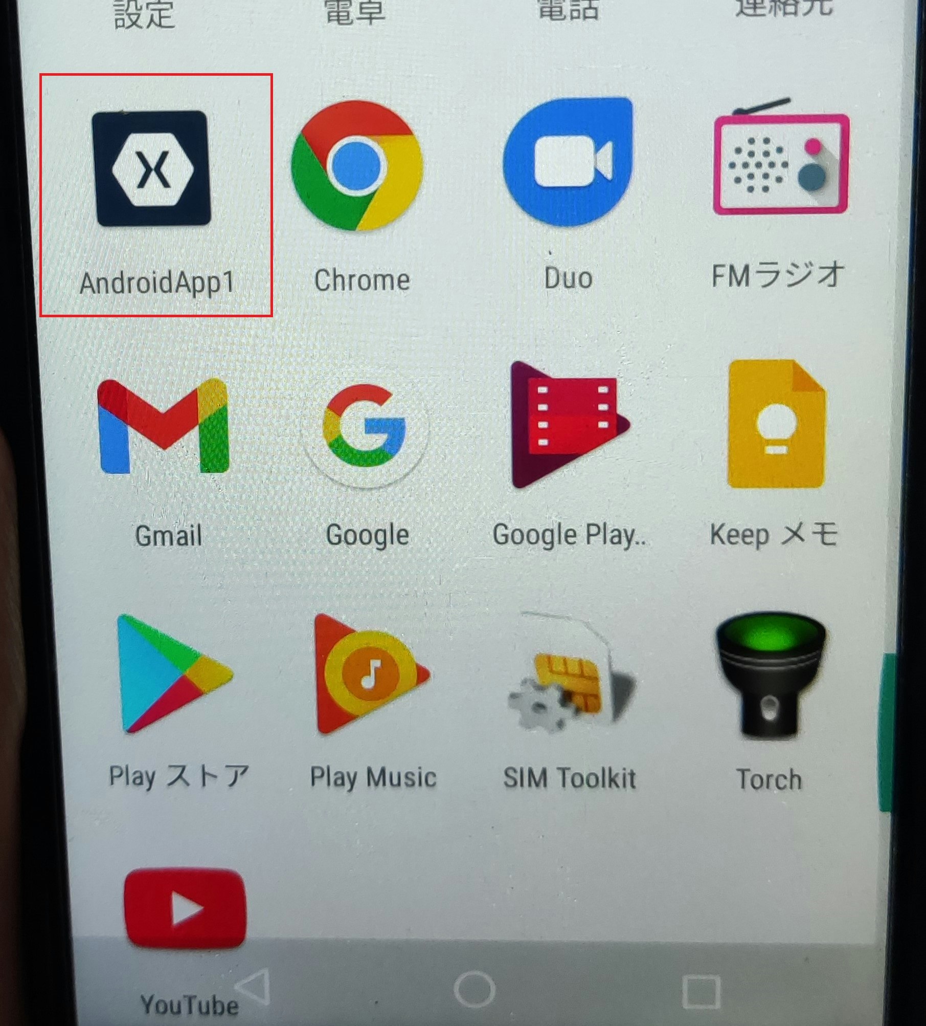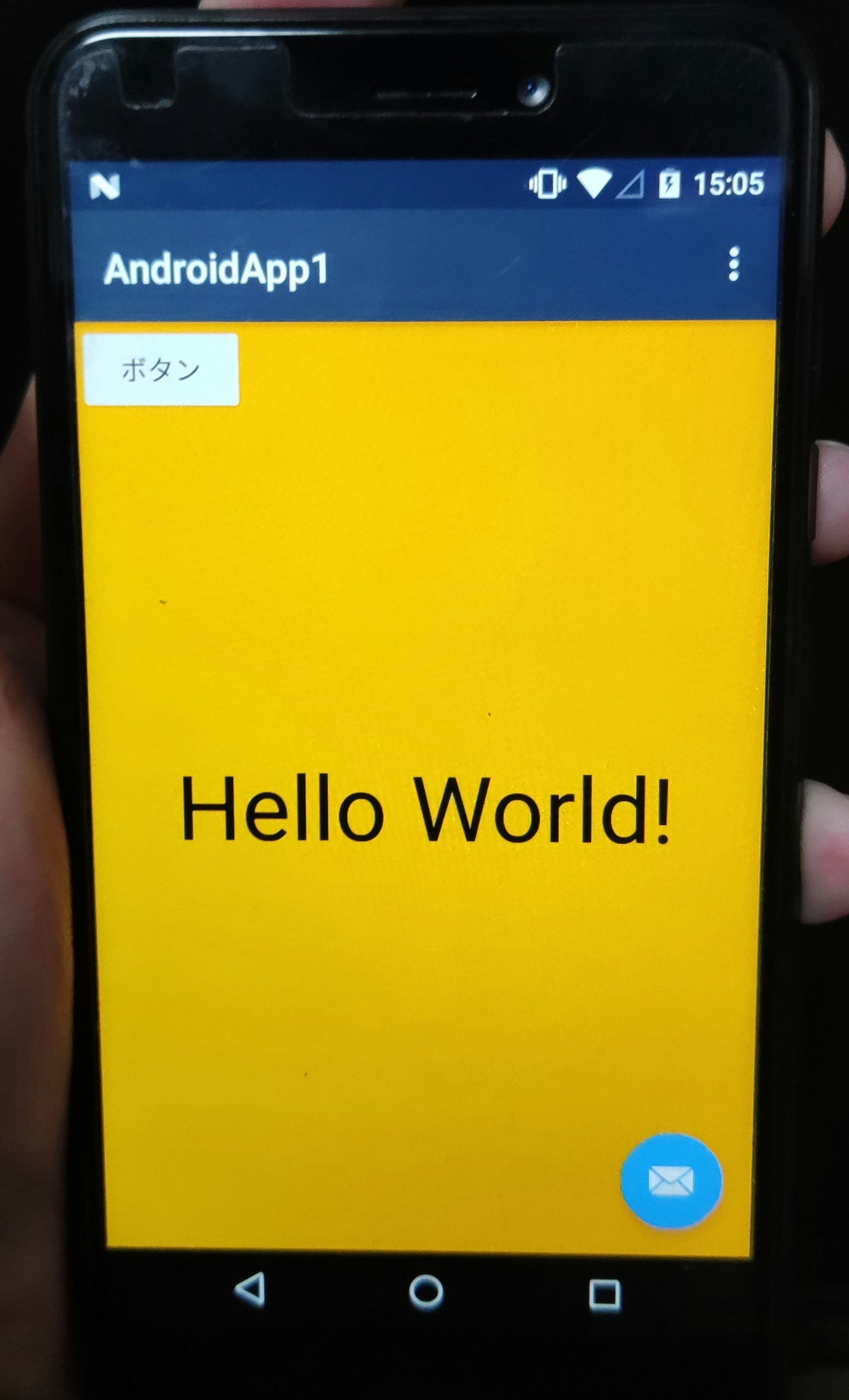 デバッグを実行すると、USBで接続しているandroid端末で今回作成したアプリが立ち上がり、動作を確認できます。実行結果は下記の画像の様になります。