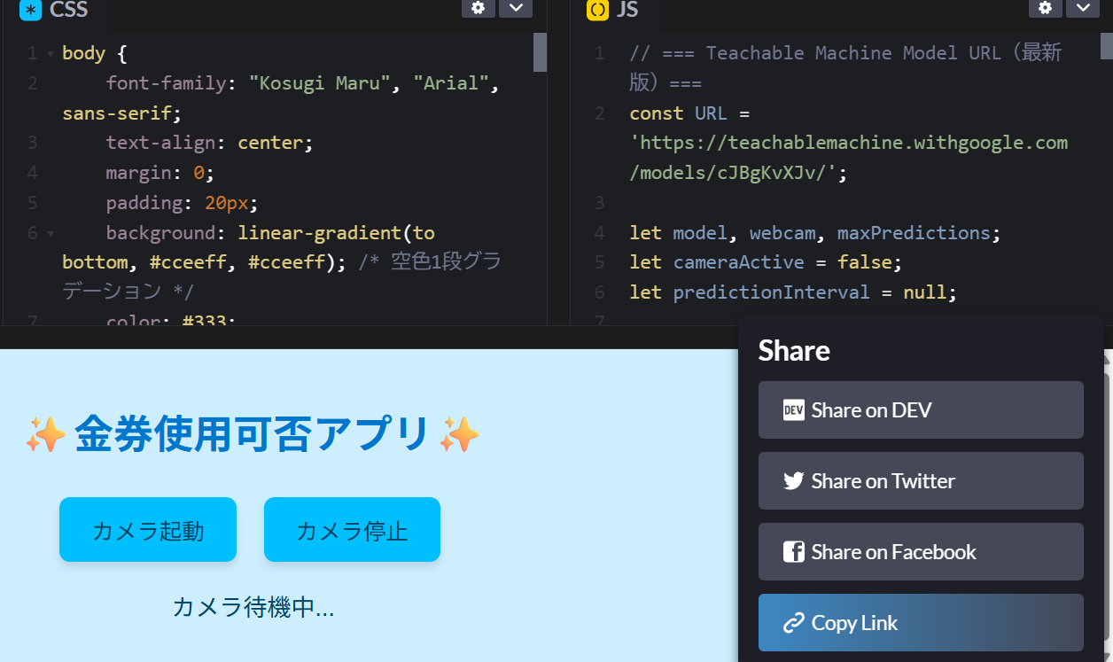 Teachable Machine に覚えてもらったことをアプリにしてくれます!