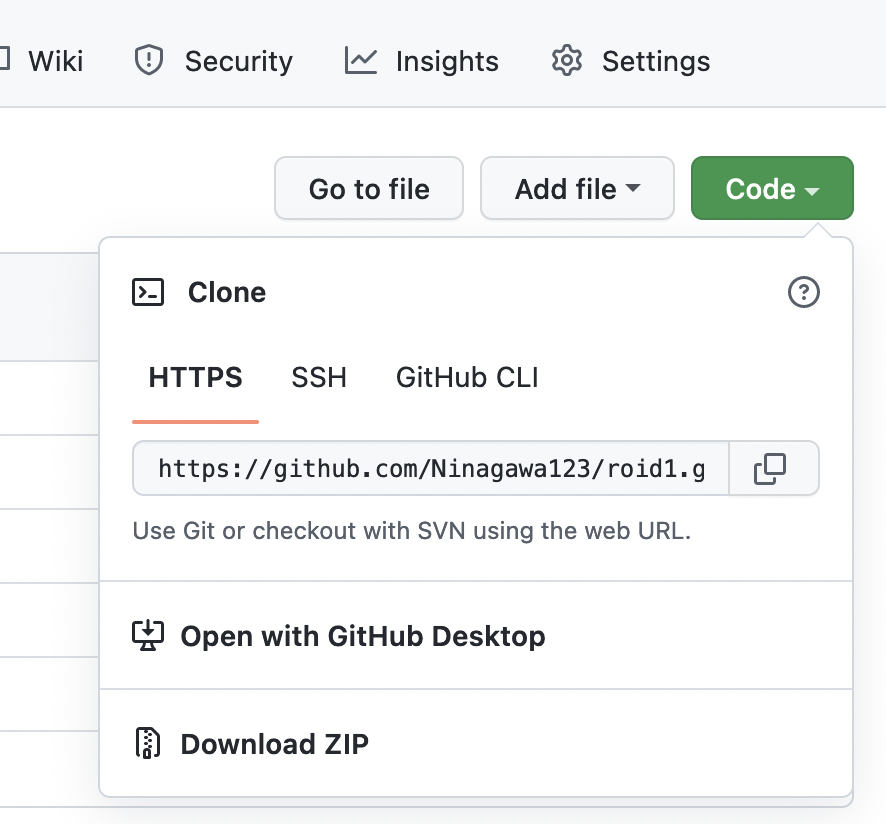 もちろんzip形式でDLしてデスクトップで作業を進めることもできます。上記リポジトリのグリーンのCodeボタンからDownload ZIPします。