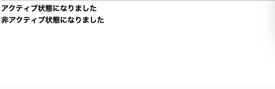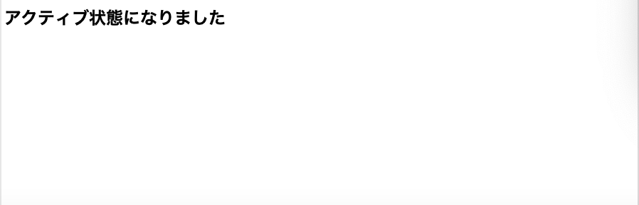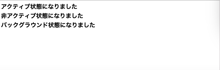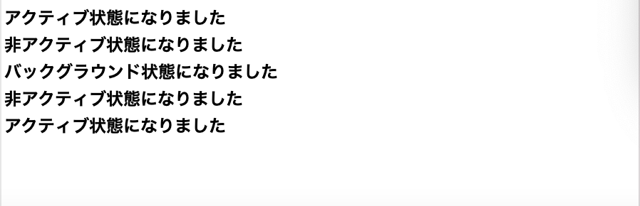 ここで再びアプリの画面に戻ると、「非アクティブ状態になりました」というメッセージに続き「アクティブ状態になりました」というメッセージが現れます。