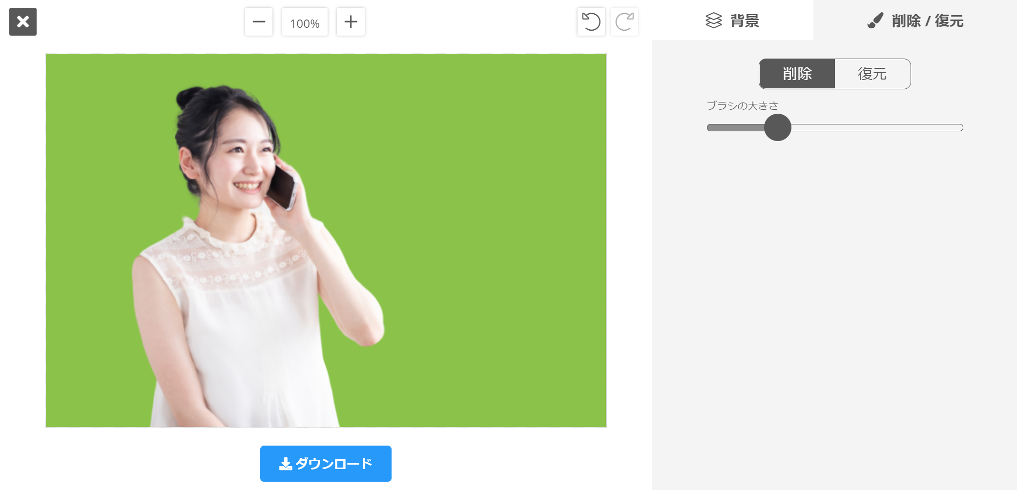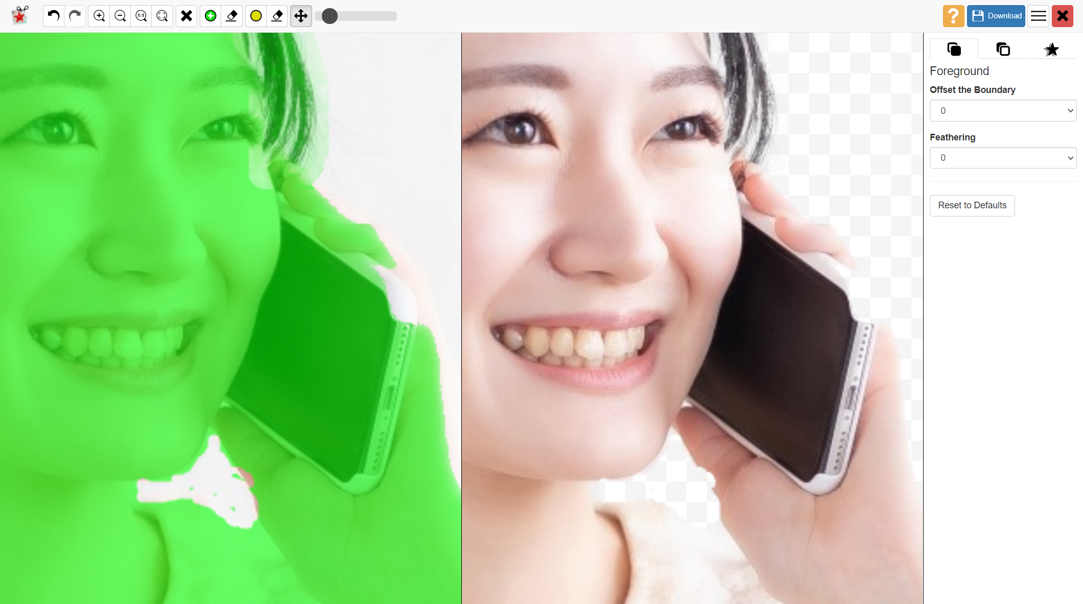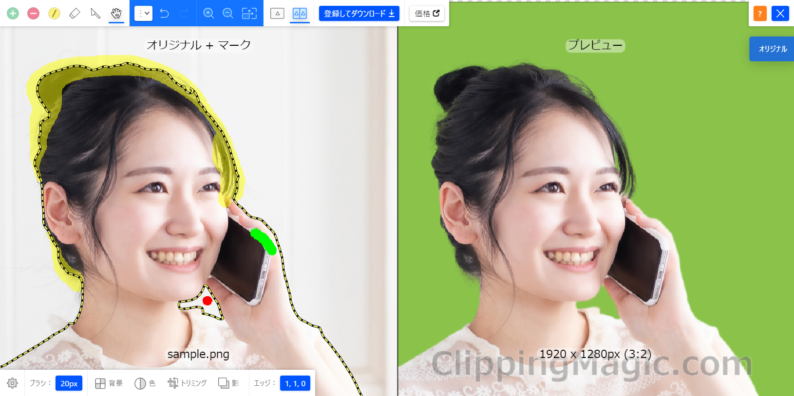 自動切り抜き後は、簡単な手動によるフォアグラウンドの範囲削除/復元ツールの様なものはありましたが、それだけでは切り抜きのきめ細かな調整はできません。有料ですが、小さなプリビュー画像は無料でダウンロード可能です。 | 80 |