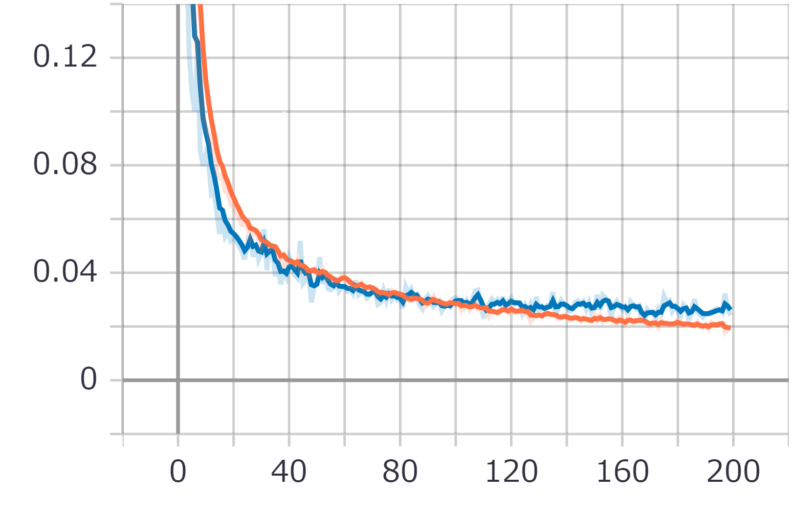 学習データ48,000個、イテレーション数100回、バッチ数480個、epoc数200回(200回繰り返し)として学習しました。