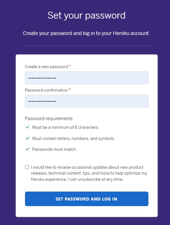 まずは、こちらから Heroku アカウントの作成を行ってください(記入項目が多くて面倒くさいですね)。