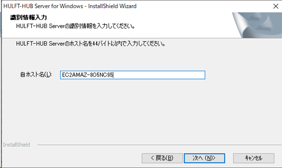 →自ホスト名(HULFT-HUB Serverを導入したOSのホスト名)を入力