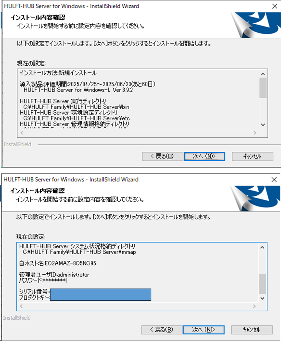 ※以降は、LグレードのHULFT-HUB Server 評価版インストール手順(Windows)をまとめた概要となります。