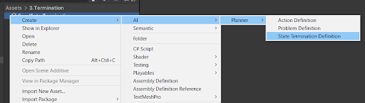 Projectウィンドウ上で右クリック、Create → AI → Planner → State Termination Definition