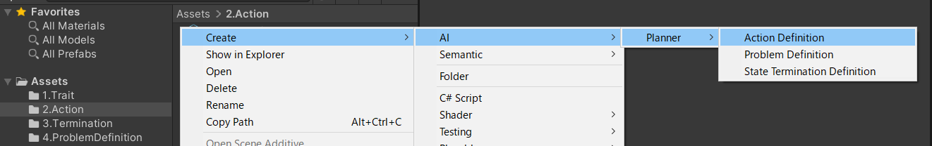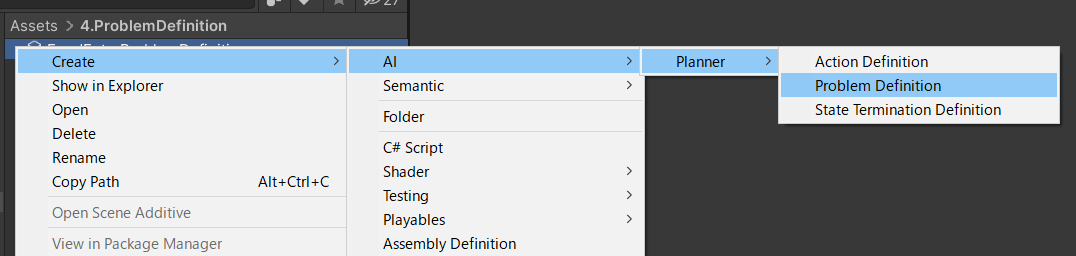 Projectウィンドウ上で右クリック、Create → AI → Planner → Problem Definition