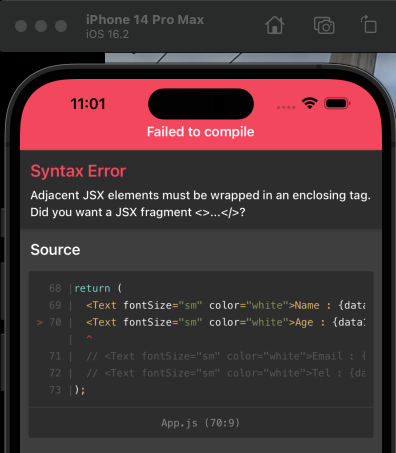 Profile画面で、ユーザ情報を複数表示させようとしたら(name, ageなど)、エラーが出ました。