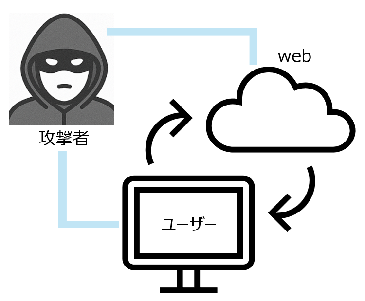攻撃者がユーザーとウェブサイトの間に割り込んで、やり取りしている情報を盗み見る攻撃です。攻撃者は、二要素認証のコードが送られている最中にそれを盗み、アカウントにアクセスすることができます。