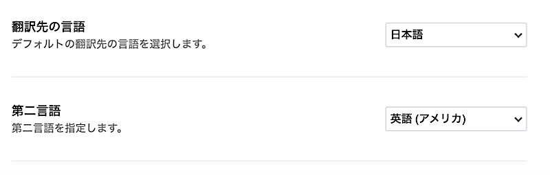 {cap: 設定:翻訳先、第二言語}