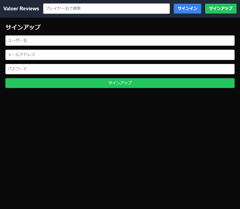こちらはサインアップ画面で、メールアドレス / ユーザー名 / パスワードで登録が可能です。