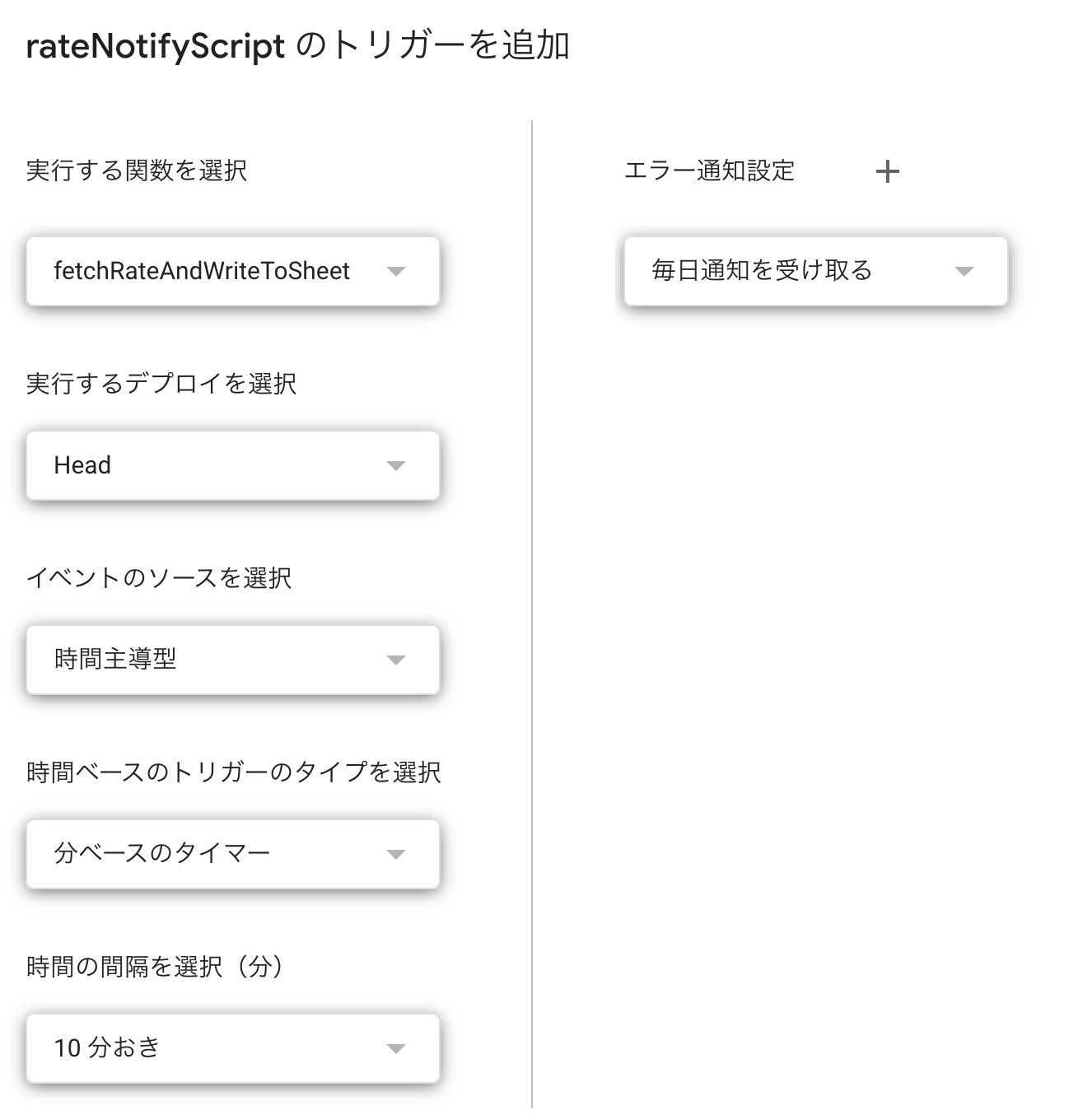 定期実行を設定することで設定した頻度でスクリプトが実行されるようになります。