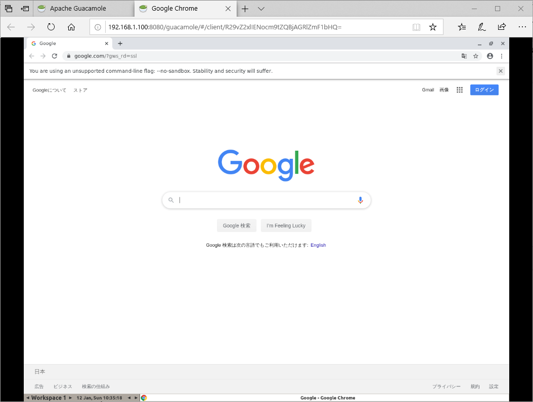 要するに踏み台サーバへGuacamoleを入れれば、外部のPCのブラウザから踏み台のGuacamoleにアクセスしてブラウザからWindowsに接続したり、ブラウザの中でクローズド環境内のブラウザを開いて外部からは見られないページを見たりすることができるようになる。